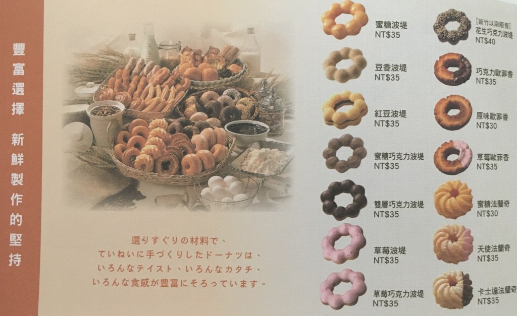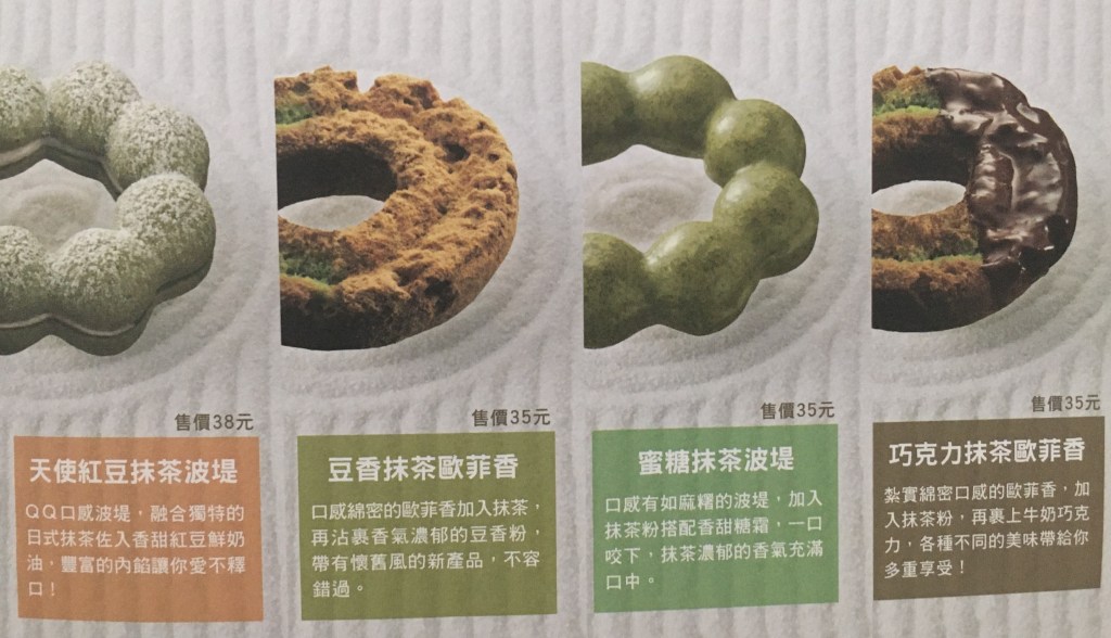 Like any good donut shop, Mister Donut offers a wide spectrum of donuts, from french crullers to old- fashioned, and from strawberry frosted to matcha flavored, while occasionally offering runs of limited edition donuts.