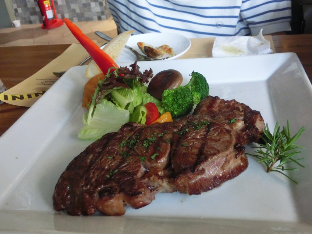 It’s hard to cook a steak well -if it’s overcooked it becomes dry and stringy, and if it’s undercooked it stays chewy and bloody- but this cut of meat was grilled perfectly. A ring of uniformly browned-but-not-burned meat encased a rhubarb red center, which gave the cutlet a beautiful mixture of cooked and meat with a soft and juicy center. It was one of, if not the, best cooked steak I had ever tasted.