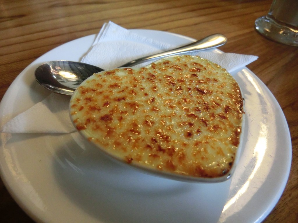 For dessert I had an aromatic crème brûlée served in a heart-shaped ramekin. It was perfectly torched, with a delicate leopard-skin burned sugar shell covering, a sweet and rich custard center.