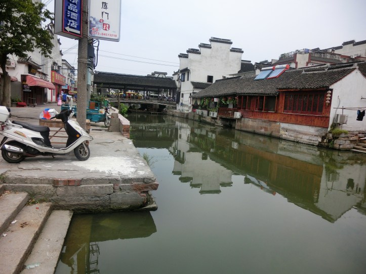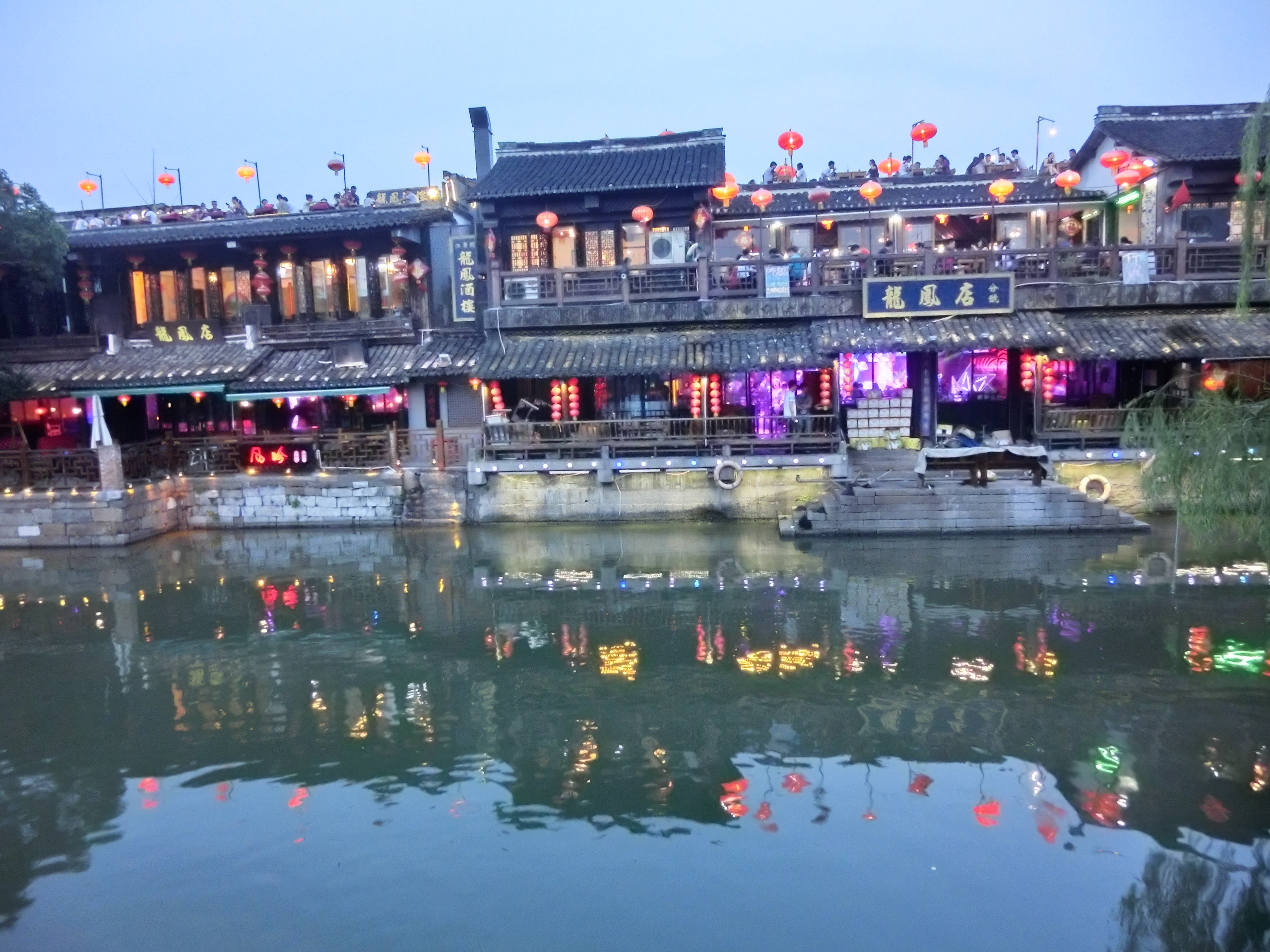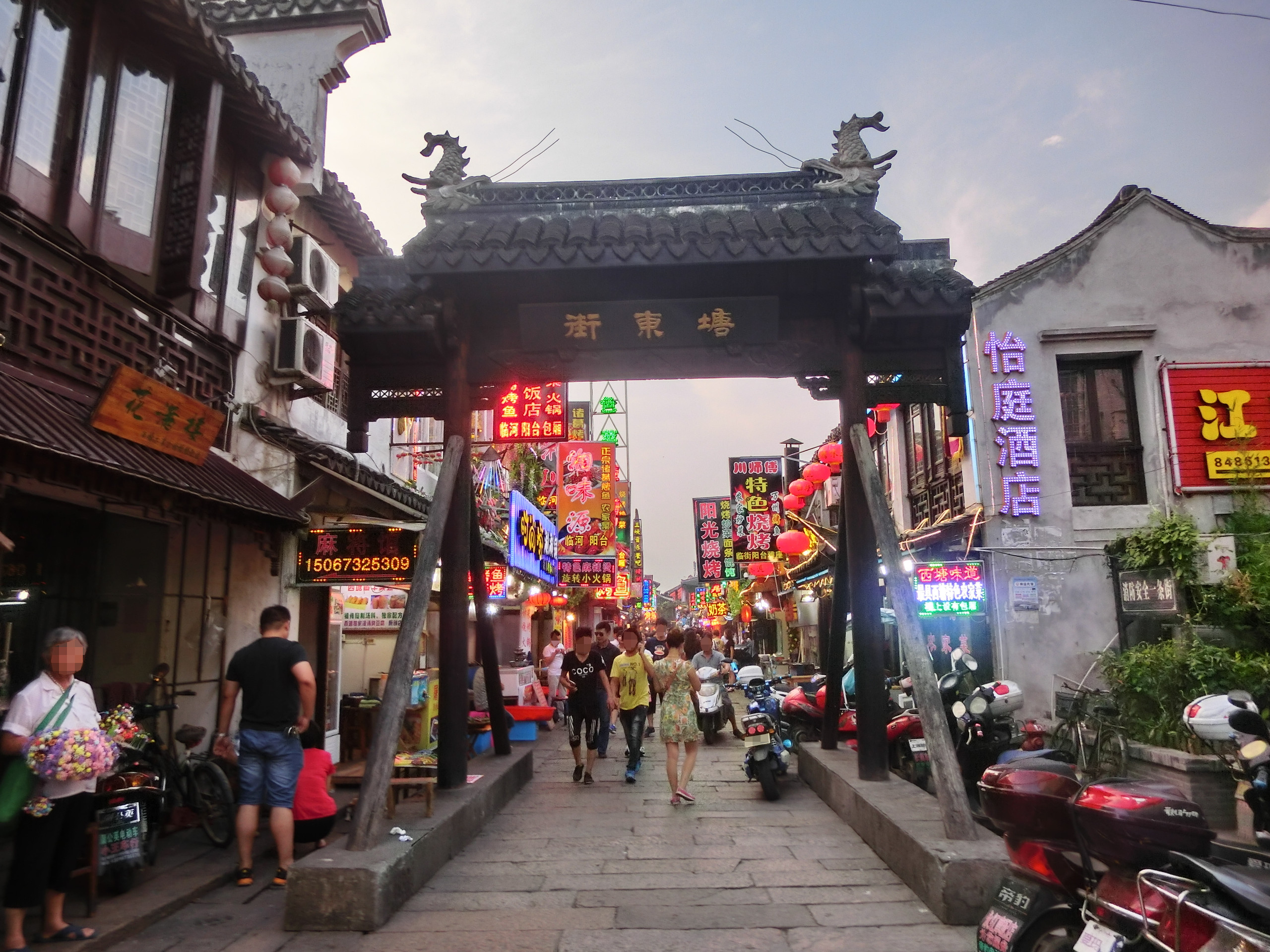 Our first stop took us through a street market on Tang Dong Street, or 街东塘 (read from right to left), which sits just east of West Lake in the province of Zhejiang. As we walked to the marketplace, we passed stretches of the river that the town was built along, and it was very peaceful, with calm waters reflecting the Oriental-style roofs and the scarlet lanterns hanging from them.