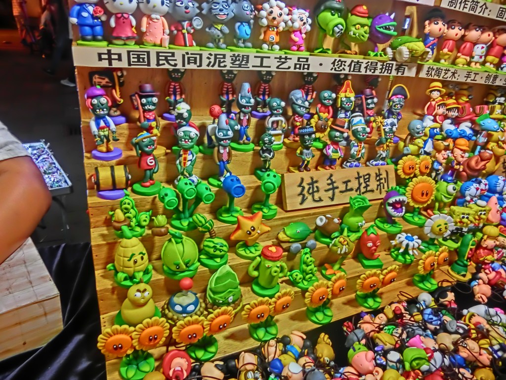 After sunset, we visited a night market, moving through stalls selling different wares, like mini stuffed animals, sugar painted candy, and clay figurines of zombies and plants from the video game Plants vs. Zombies, which I loved at the time. The clay figures were incredibly detailed and accurate to the game, so I got a Kernel-pult plant, a butter-launching corncob.