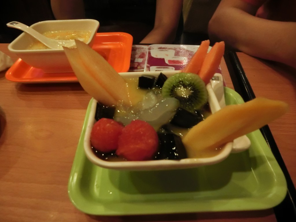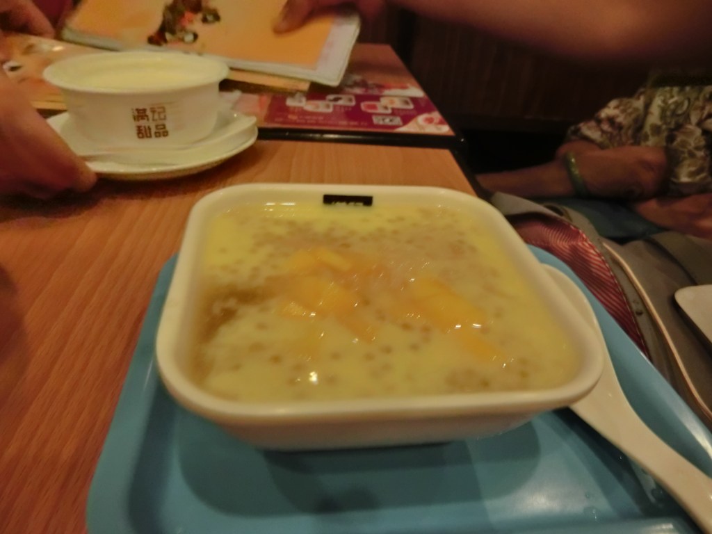 We stopped at Honeymoon Dessert (满记甜点), a Hong Kong chain dessert shop, for traditional Chinese desserts, like sweet almond soup, fruit soup, mango and tapioca in coconut milk, and fresh fruit salad.