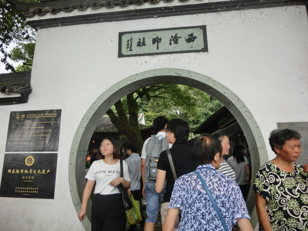 Our trip ended with a visit to the site of the Pinghu Qiuyue or 月秋湖平 (again, read from right to left) temple, which stands right at the edge of West Lake. The temple’s small garden is surrounded by verdant green trees and small stone ponds filled with tiny orange fish, all elements of a traditional Chinese garden.