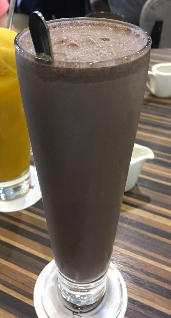 Our drinks included a chocolate milkshake and a mango slushie, and a slice of cake for dessert.