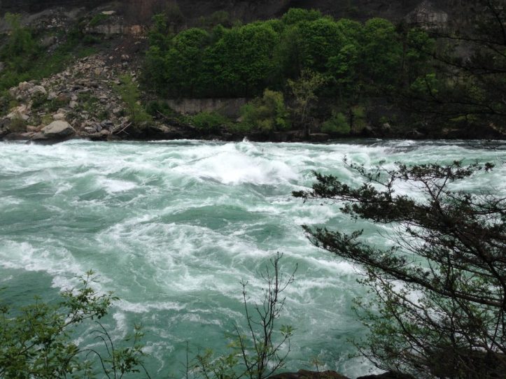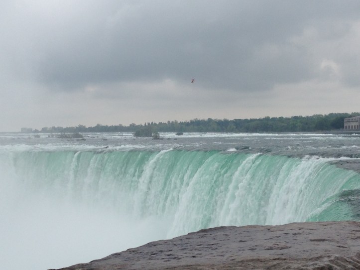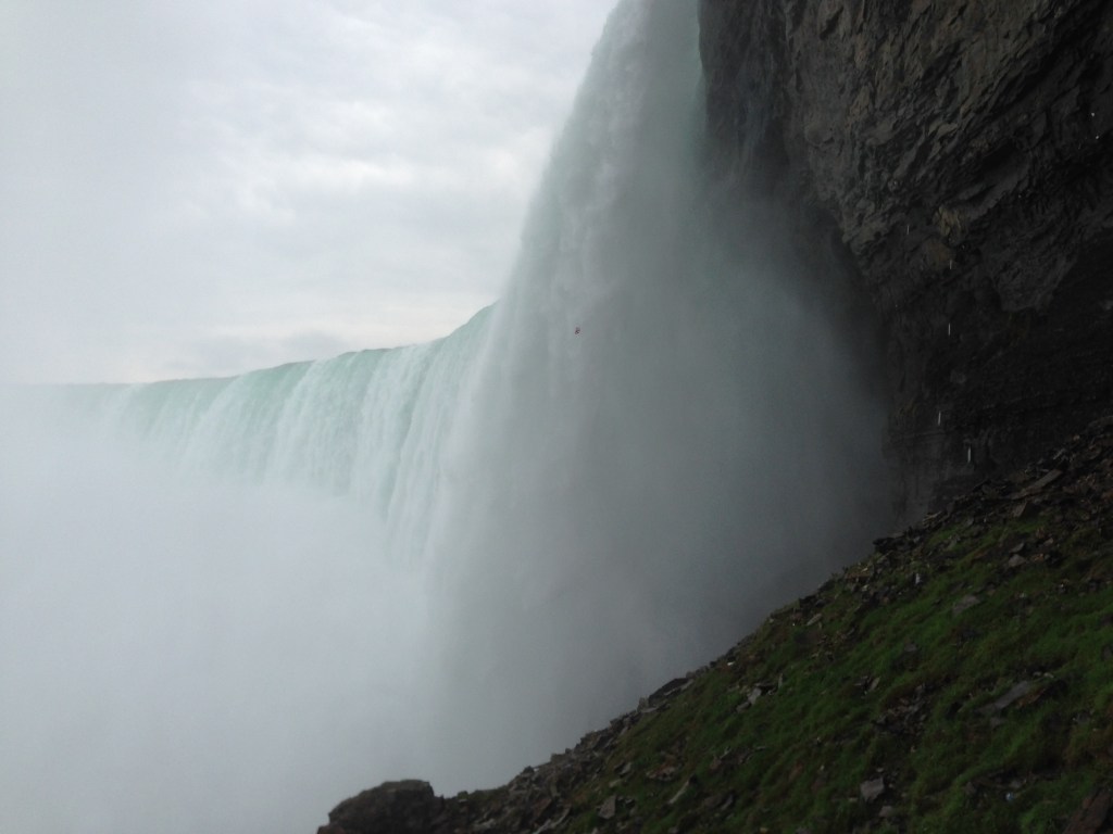 My parents and I headed to Canada in order to witness the beauty of the famous falls, and it was a great experience. I’m going to warn you right now, though: if you hate loud noises and/or getting wet, you’re probably not going to have a good time. In order to tour the falls, you have to purchase passes for each member of your party. You’ll be permitted to view the falls from multiple platforms afterwards. The waterfall was massive, churning, and constantly roaring with the sound of the turquoise water rushing over the ledge and falling with a spray below. From this distance, you can already appreciate the power of this natural wonder.
