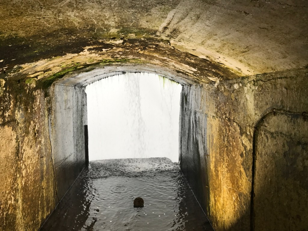 ]However, my favorite part was going behind the falls through a tunnel carved into the ledge. These stone passageways were very narrow, slippery, and damp. Although the number of people meant that we had to each inch forward in order to see the water pouring down in front of the mouth of the tunnel, it was fascinating to see a waterfall from behind.