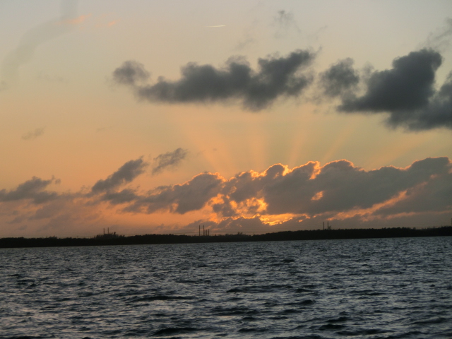 After spending an afternoon relaxing at the picnic tables all around the Biscayne visitor center, we took a boat ride out into the bay to see the sunset. Watching the sun dip lower into the horizon through the clouds as the sky turned from blue to a dusky orange was a magical experience. The feeling of bobbing along gently on a boat on the waves while the afternoon turned to night was wonderfully calming.