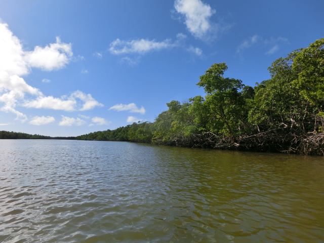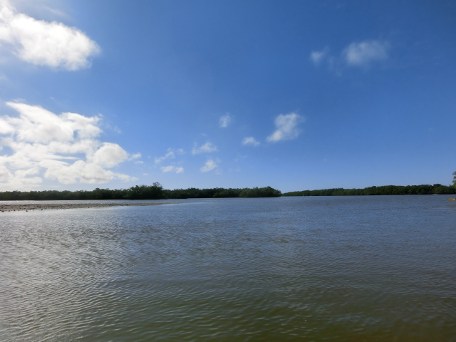 There was also a long bridge that stretched across the water, from the open waterfront to an area near the peninsula, which was populated heavily by mangroves. The water was clear, and in the shade of the trees you could see tiny fish darting around their roots. From the bridge you could clearly see the sunlight sparkling on the water and admire the lush trees that stood on along the shallow, sandy banks of the bay.