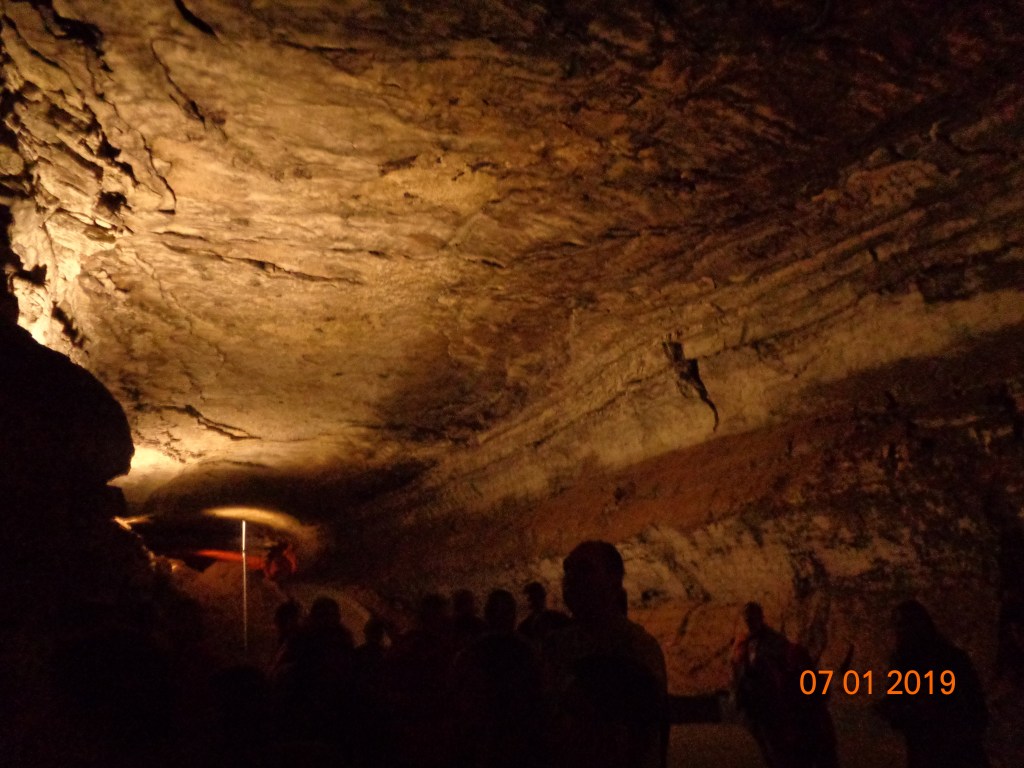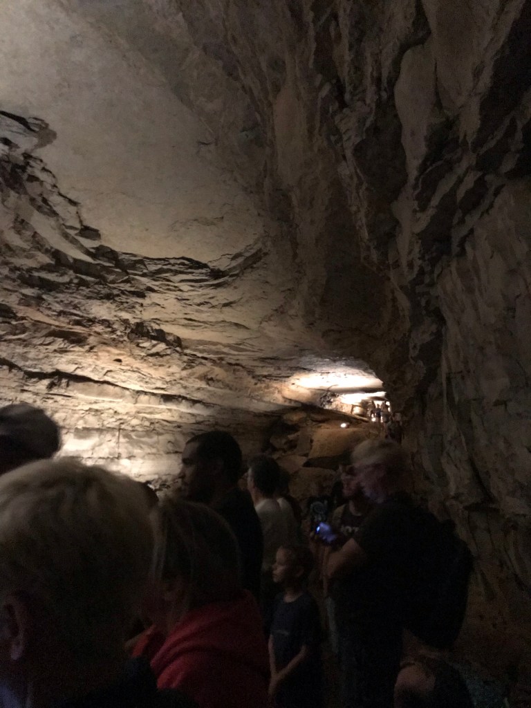 It was a blisteringly hot summer day, with it being July and all, but once we were underground the air became cool and dry. The cave was lit dimly with lights every few meters, but it was so cavernous that the entire place was mostly shrouded in shadows and darkness. It wasn’t my first time touring a cave, as we had visited Luray Caverns (another cave network in Virginia) before, but it was dwarfed by the size of Mammoth Caves. Imposing stone walls stretched into the darkness above, and although our group members were constantly speaking to one another, all sounds seemed muted and hushed in the face of the imposing size of the cave.