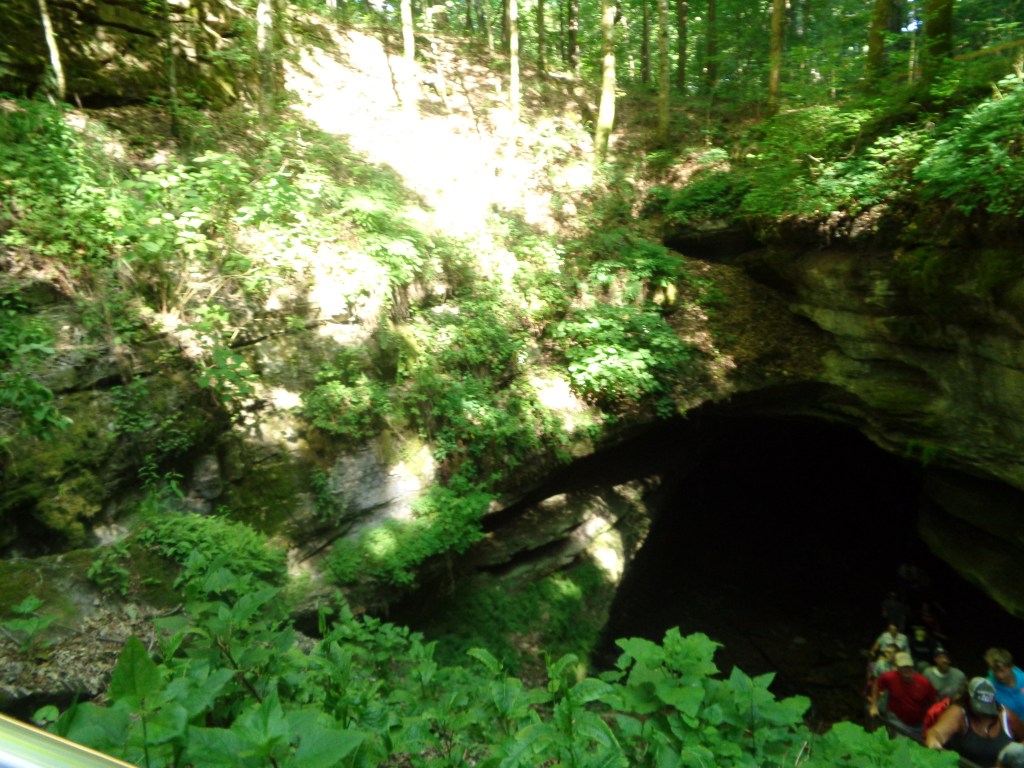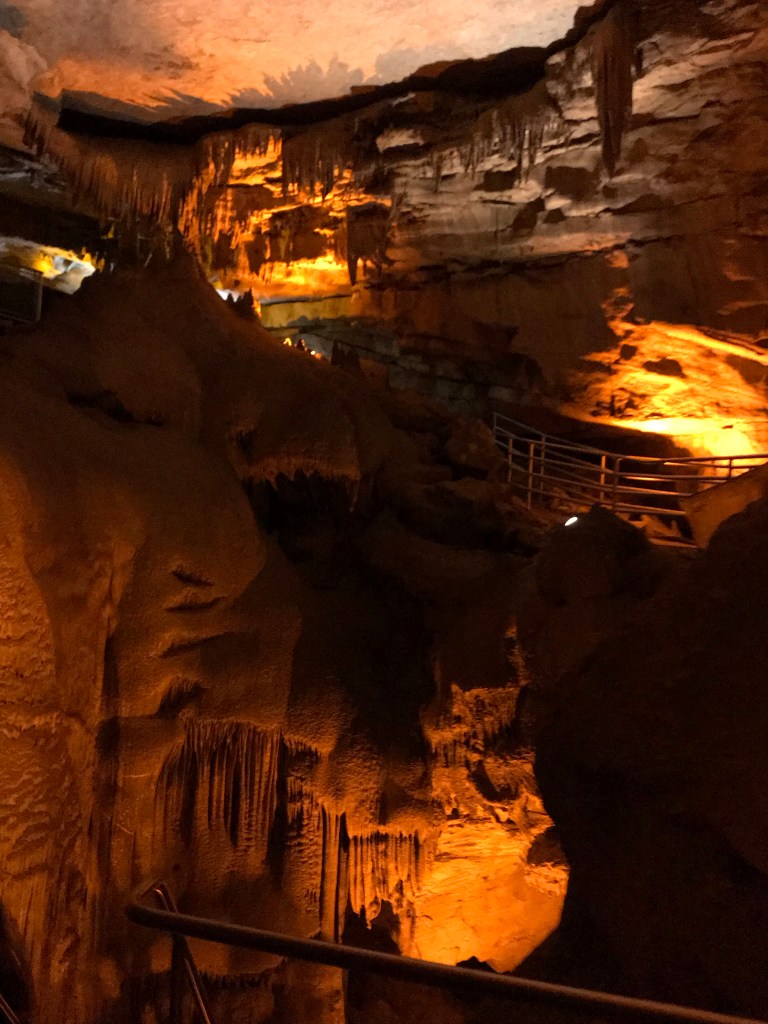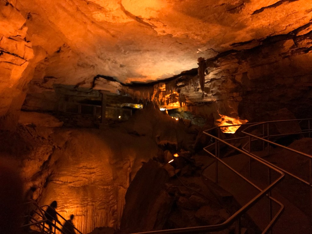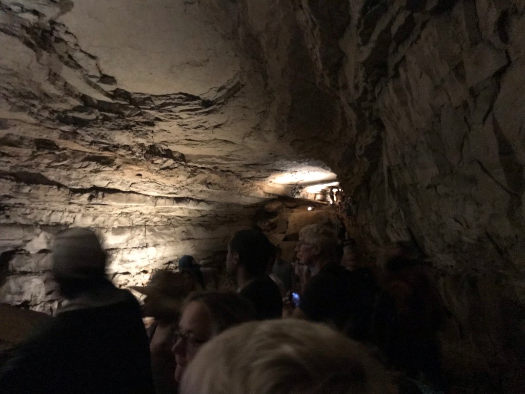 Mammoth Cave is a massive network of underground tunnels in Kentucky. It covers about 83 square miles in terms of area, and it is the longest cave complex in the world. It was established as an official national park in 1941. Our tour began with the guide leading us deep into a gaping maw of rock in the ground. It was awe-inspiring to see the giant, dark hole in the ground as we descended a set of steps into it.