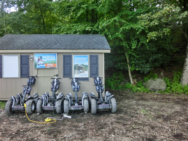 Our next and final stop at the resort was a Segway trip up the mountain. I had never heard of this activity before, so I was very curious to see how it worked. The rest of our group never showed up, so our guide called in a golf cart to drive us to the shed where the Segways were stored. After unplugging three, she gave us a quick tutorial on how to ride one. Having never ridden a Segway before, I was slightly nervous; the hill we were practicing on looked fairly steep, and I could only picture all-too-clearly myself tumbling backward off it down the trail. I had thought that the Segway would be controlled by handlebars (like a motorcycle), but they were operated in a way that was completely unexpected to me. In order to move backwards and forwards, you leaned your weight in the direction you wished to go. It was quite easy, and the Segway’s tires were much larger than I had anticipated; their ridges gripped the trail quite well.